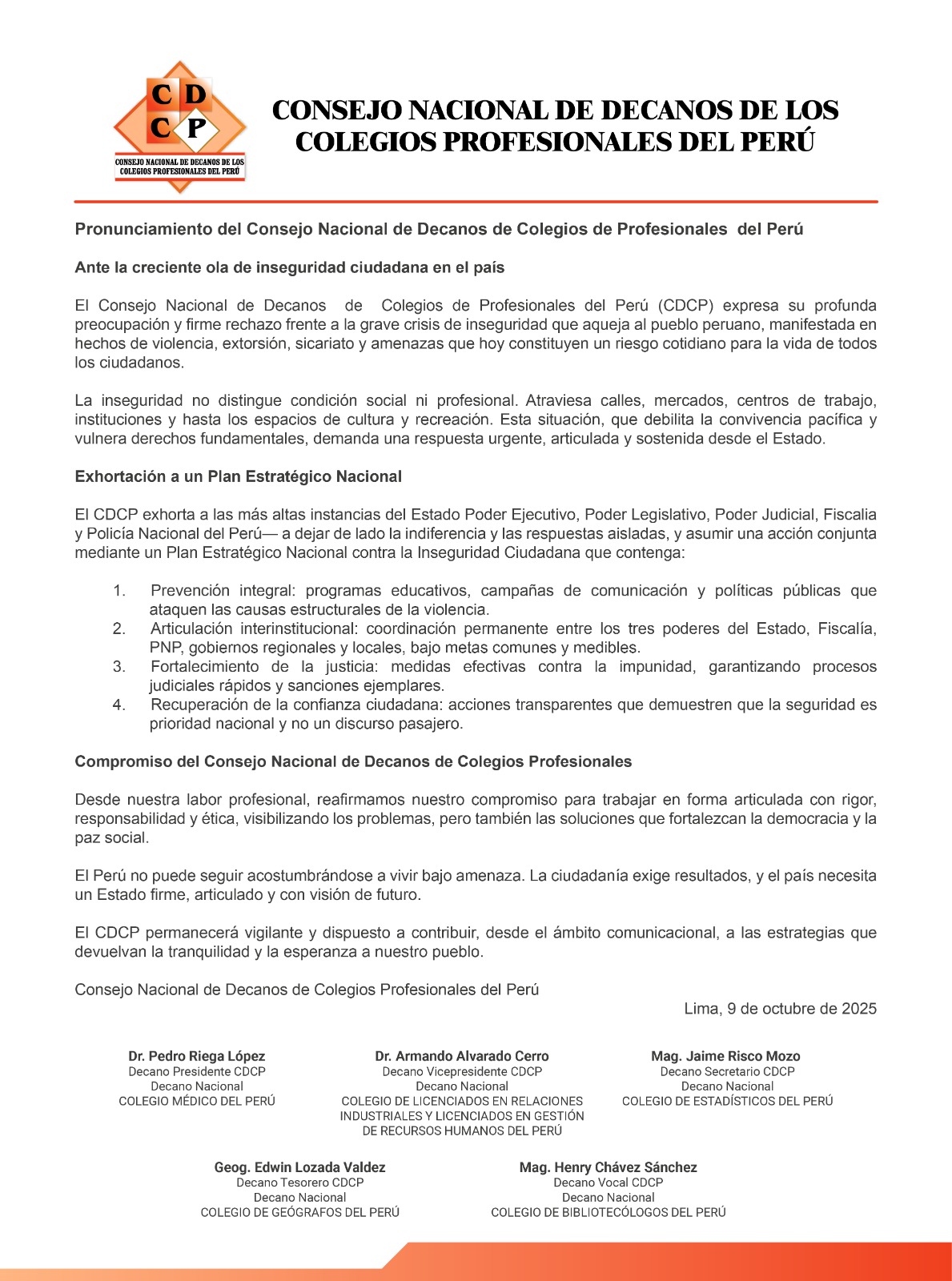 Oct 9, 2025 | PRONUNCIAMIENTOS